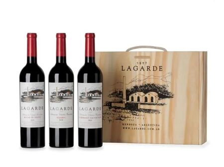 Estuche De Madera Vinos Por 3 Botellas Lagarde G-AC043