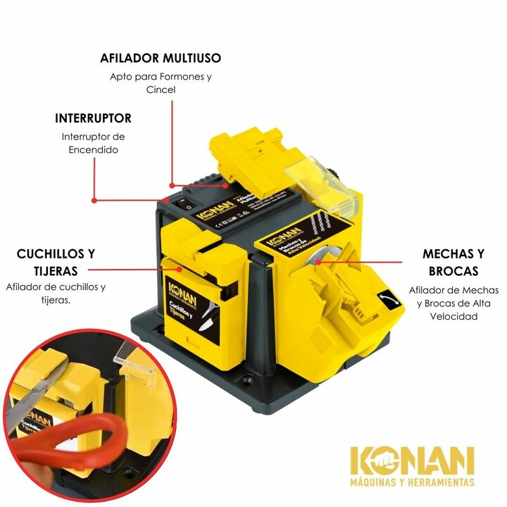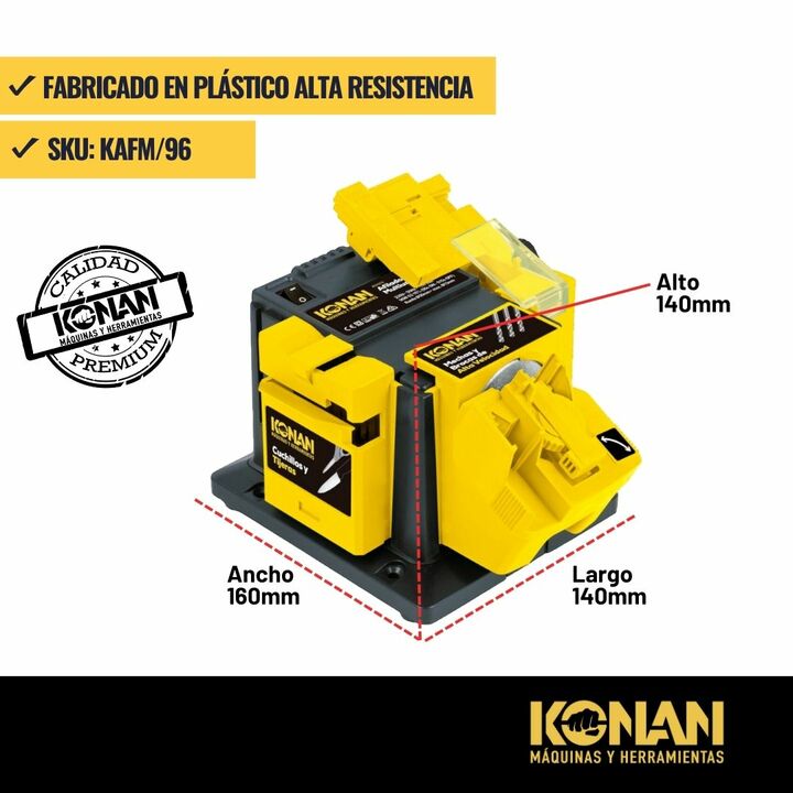 El afilador eléctrico Konan es la herramienta perfecta para mantener tus cuchillos, mechas y tijeras siempre afilados y listos para usar. Con su potencia de 96W y su sistema de afilado con piedra, podrás obtener resultados precisos y de calidad en poco tiempo. Su diseño doméstico lo hace ideal para ...
