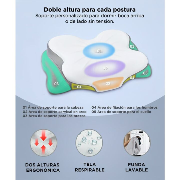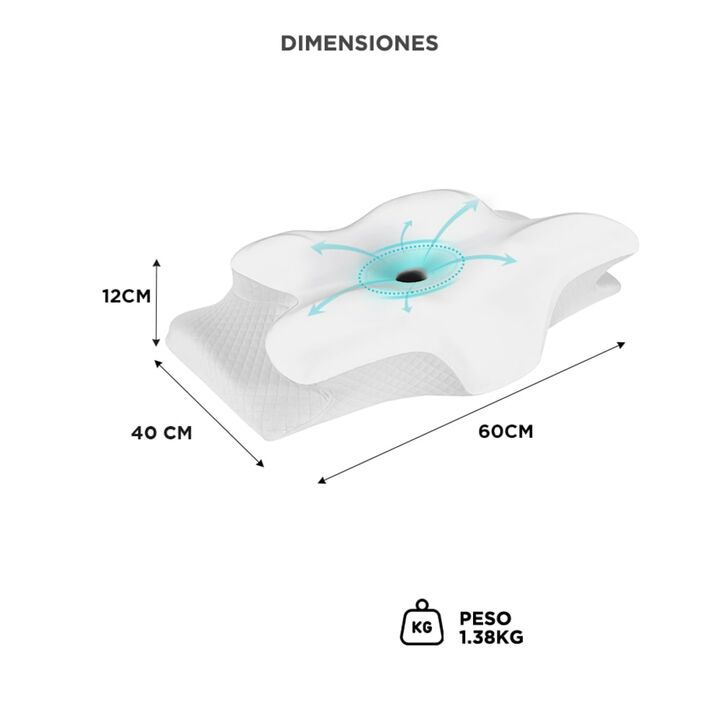 Soporte Cervical Ergonómico: Diseño tipo mariposa que alinea cabeza, cuello y hombros. Reduce tensión muscular y mejora la postura durante el sueño. Espuma de Memoria Premium: Núcleo viscoelástico que se adapta al contorno natural del cuerpo y recupera su forma original noche tras noche. Sensación d...
