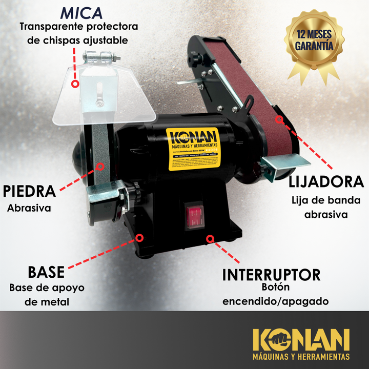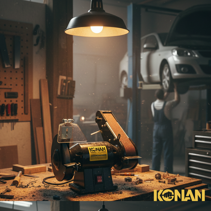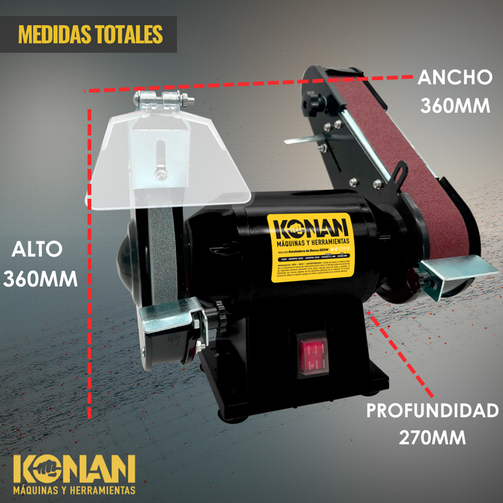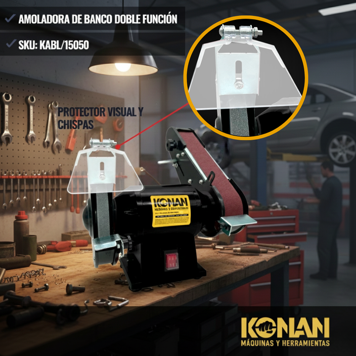 La Amoladora de Banco con Lijadora 250W Konan es una herramienta eléctrica estacionaria que combina la funcionalidad de una amoladora tradicional con una lijadora de banda, proporcionando versatilidad y eficiencia en un solo equipo. Pensada para talleres, mecánicos y aficionados al bricolaje, esta m...