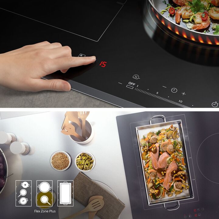 MUESTRA CLARAMENTE SI EL ANAFE ESTÁ ENCENDIDO O APAGADO Con Virtual Flame Technology™ podés disfrutar de un control visual intuitivo y ver claramente si el anafe está encendido o apagado. La iluminación LED en frente de una de las zonas de cocción se ilumina como una llama de gas real para mostrar q...