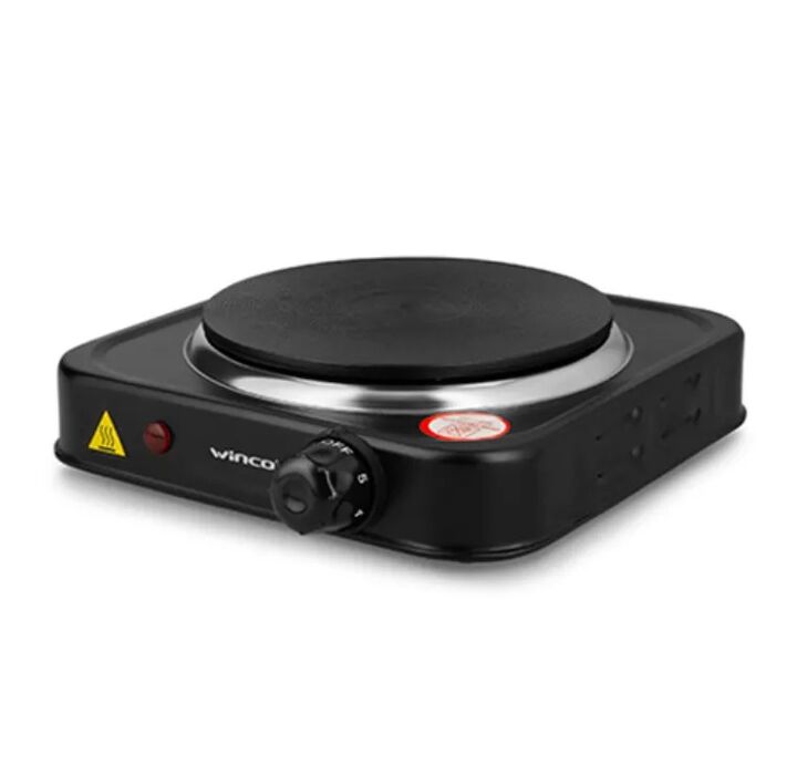 Anafe elctrico winco de 1 placa regulador de temperatura termostato automtico placa calentadora de 155 mm. de dimetro proteccin por sobre calentamiento indicador luminoso de encendido potencia 1000W