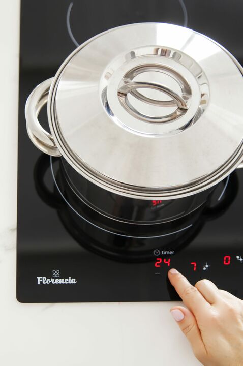 Funciona utilizando un campo magntico alternante que agita las particulas del material del elemento con el que se cocina el cual puede ser de acero inoxidable o esmaltado siempre con base ferrosa.La energa generada y optimizada se transforma en calor transmitindose directamente a la olla y su conten...