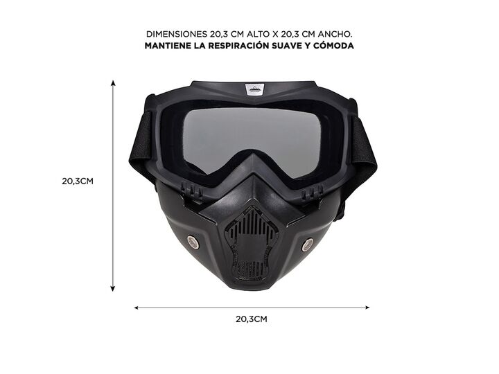 Calidad prémium: resistente, peso ligero, máscara extraíble, resistente al viento, sistema de filtración transpirable, mantiene la respiración suave y cómoda Especificaciones Material del Armazón: Plástico Diseño Polarizado 100% Protección UV Diseño Unisex Es ajustable: Si Estilo: Deportivo
