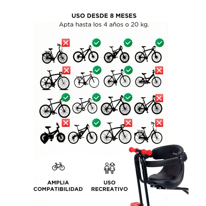 Seguridad pensada para el traslado infantil La sillita infantil para bicicleta Gadnic incorpora cinturón de seguridad y cerco protector, brindando mayor contención durante paseos urbanos o recreativos. Estructura resistente para uso confiable Fabricada en PE combinado con acero de alto carbono, ofre...