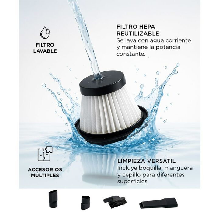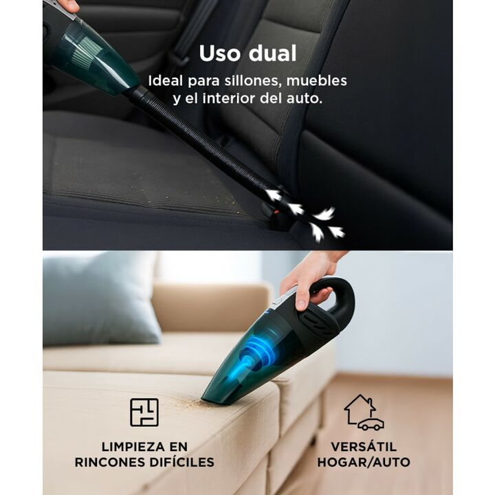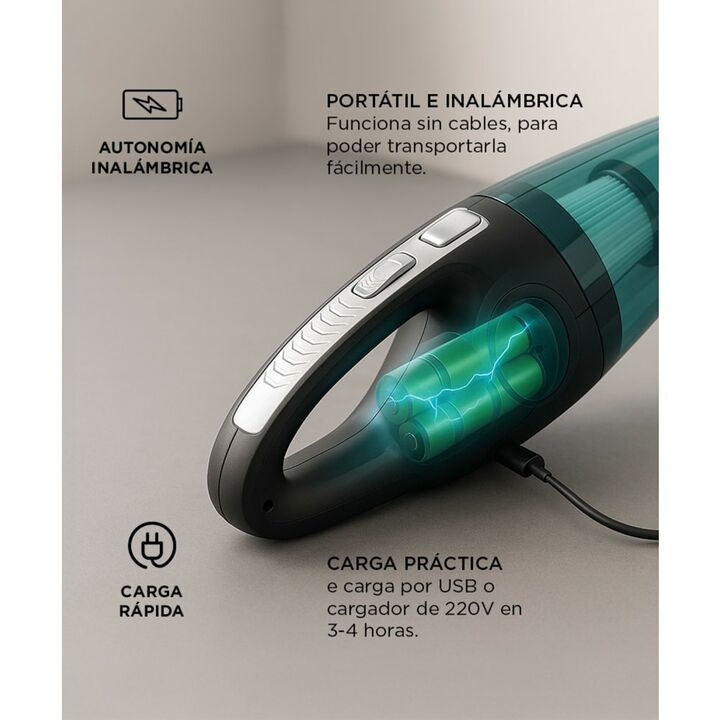 Descubrí la nueva aspiradora de mano inalámbrica, diseñada para ofrecerte una limpieza rápida y eficiente en cualquier lugar. Con un peso ligero y su diseño portátil, esta aspiradora es fácil de manejar y llevar a cualquier parte. Ideal para una limpieza profunda, su potente motor de 7.2 V proporcio...