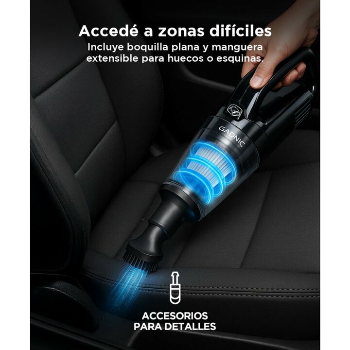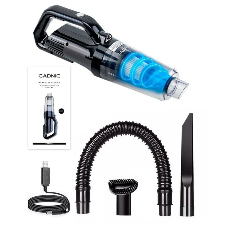 Potencia Impresionante: Equipada con un motor de 120W, esta aspiradora ofrece una potencia de succión de hasta 9000pa, garantizando la eliminación eficaz de polvo, migajas, pelo de mascotas y más, ¡sin esfuerzo! Inalámbrica y Compacta: Olvídate de los cables enredados. La aspiradora de mano inalámbr...