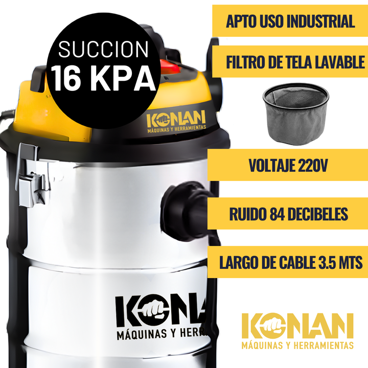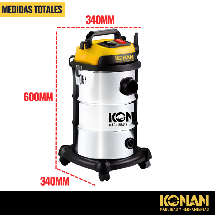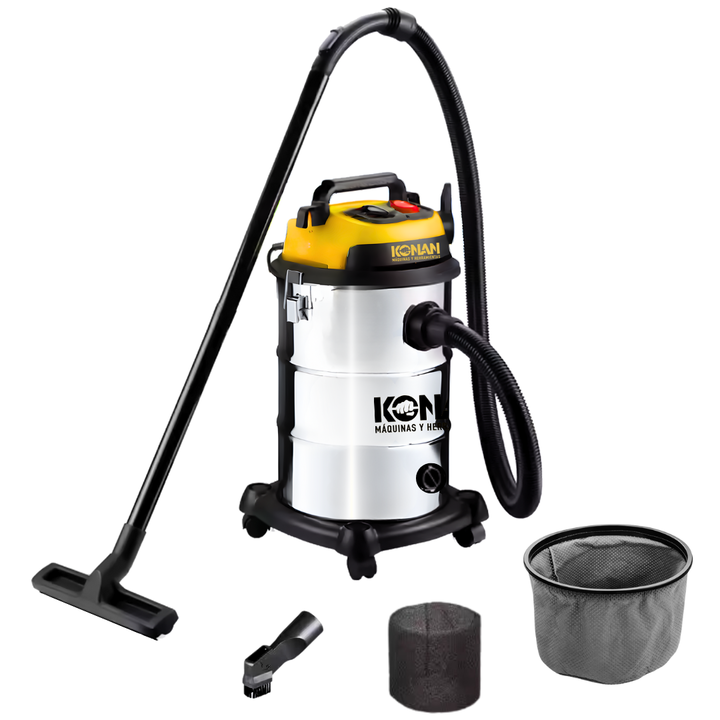 La Aspiradora Industrial Konan 1400W de 30 Litros es la herramienta ideal para trabajos de limpieza exigentes, tanto en entornos industriales como domésticos. Diseñada con un potente motor de 1400W, esta aspiradora ofrece una gran capacidad de succión para eliminar eficazmente polvo, suciedad y líqu...