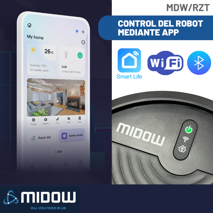¡La limpieza de tu hogar nunca fue tan fácil! La ASPIRADORA ROBOT SMART MIDOW viene equipada con WIFI, app de control y todo lo que necesitas para mantener tu casa impecable. ¡Solo programa y relájate!