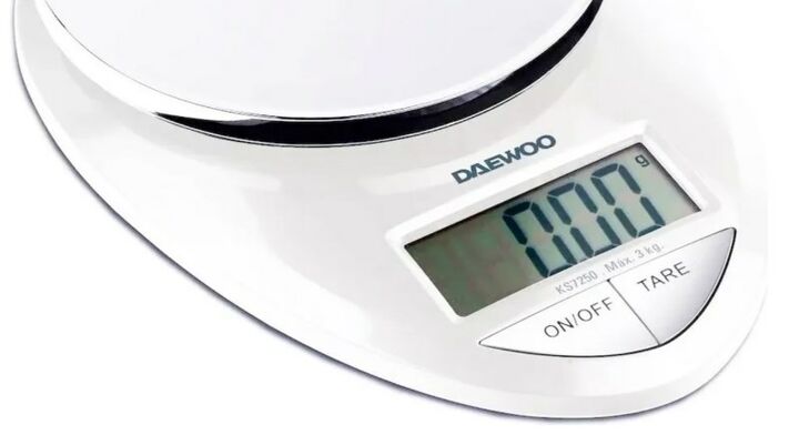 Balanza De Cocina Digital Ks7250 Daewoo - Diseño Moderno - Capacidad Hasta 3 Kg - Medidas:21,5Cm X 15Cm X 3,5Cm - Peso 0,25Kg - Graduaci_N 1 G - Funci_N Tara Que Permite Agregar Alimentos Y Volver A "0" Sin Sacarlos - Apagado Autom¦Tico - Indicador De Sobrepeso - Indicador De Bater+A Baja- Modelo K...