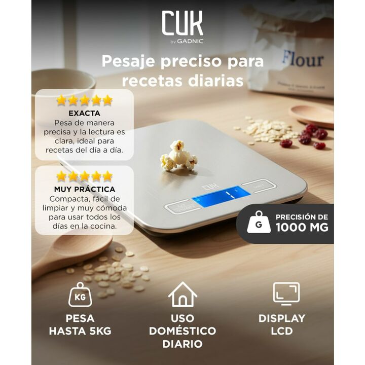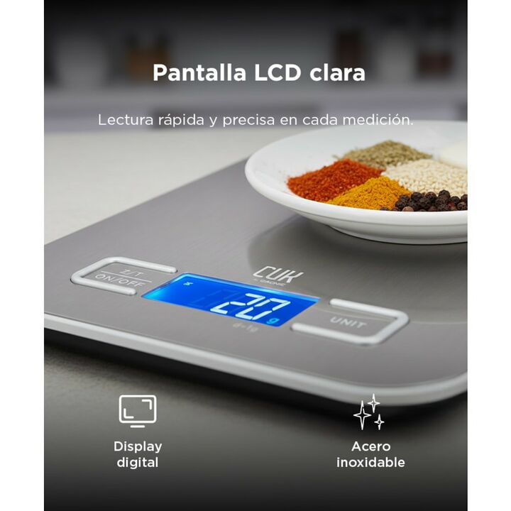 Pesaje preciso para recetas que requieren exactitud: La balanza de cocina digital Gadnic ofrece una precisión de 1 gramo, permitiendo medir ingredientes con alto nivel de detalle. Resulta adecuada para recetas, repostería y preparaciones donde el control del peso es clave. Capacidad adecuada para el...