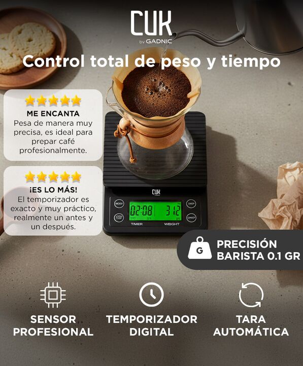 Precision para cada receta Balanza digital diseñada para mediciones exactas con resolucion de 0.1g y capacidad de hasta 3kg. Permite controlar cantidades pequeñas o grandes con estabilidad y rapidez en cada pesaje. Ideal para recetas que requieren exactitud constante en cada paso del proceso. Contro...