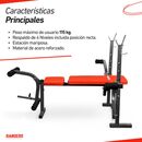 Tipo: Banco. Estructura: Caño estructural de acero. Material de asiento|respaldo: Goma espuma de alta densidad | Cuero sintético. Banco Scott: Si. Plegable: No. Medidas Armado: 109x131x153 cm. Peso del producto: 14 kg.