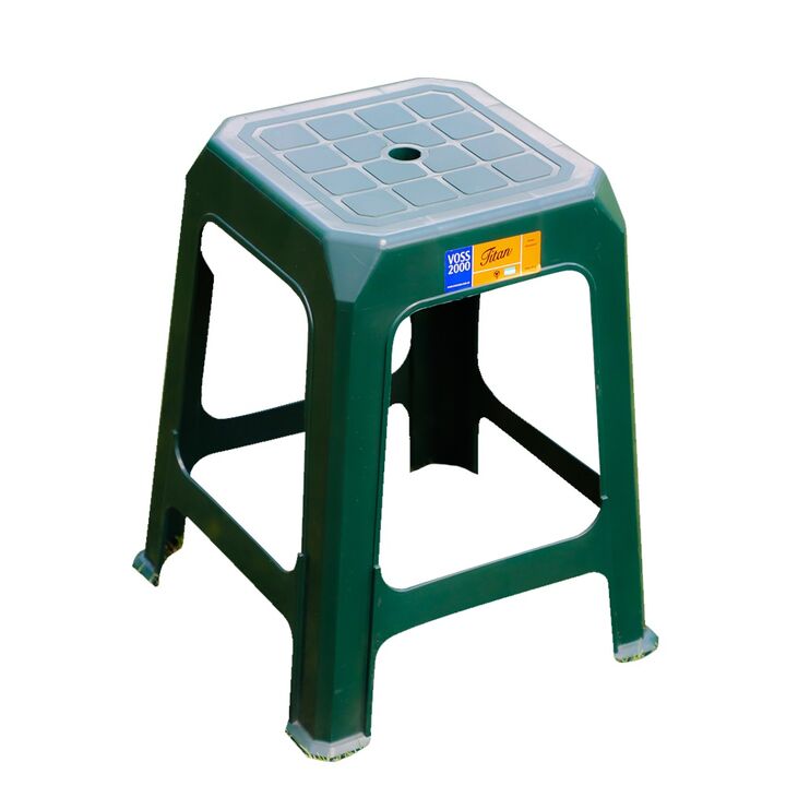 Banqueta plastica voss 2000 titan verde Ancho 36 cm Profundidad36 cm Altura 45 cm Peso 1 kg Resistencia135 kg
