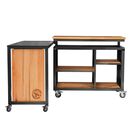 BARRA IRON WOOD MÓVIL PIVOTANTE MATERIALES: Madera de Leuka compensada y metal reforzado con terminación con pintura poliuretánica. Barra suplementaria con porcelanato. MEDIDAS: Largo 120 cm x Ancho 60 cm x Alto 101 cm Barra suplementaria: 56cm x 1,42cm DETALLES DEL PRODUCTO: Tapa de madera compensa...