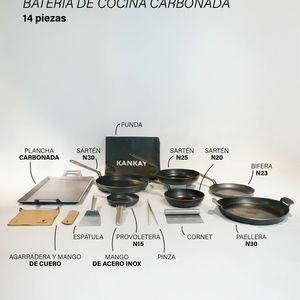 La bateria carbonada completa esta disenada para chefs apasionados y amantes de la buena comida que buscan utensilios resistentes versatiles y duraderos. Cada pieza esta confeccionada en hierro carbonado laminado en caliente lo que garantiza una distribucion uniforme del calor y una resistencia exce...