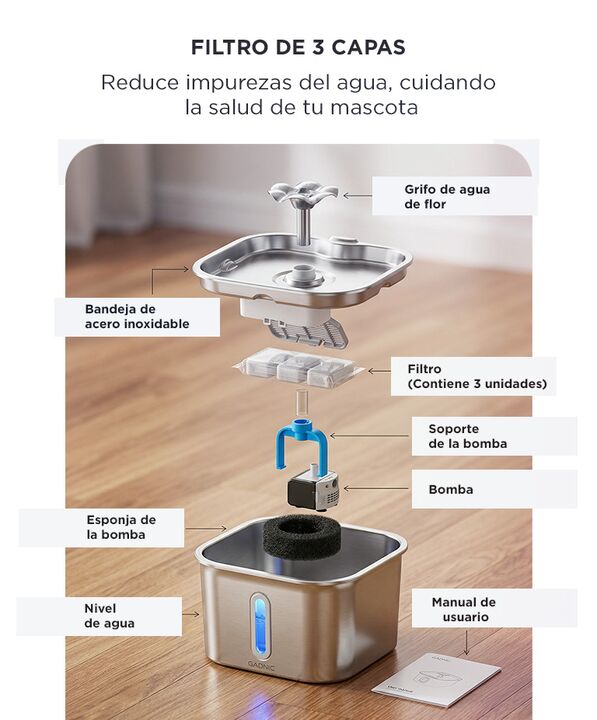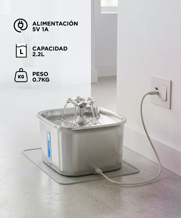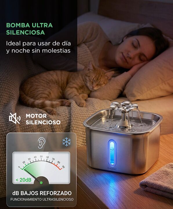Acero inoxidable 304 más higiénico y duradero: El Bebedero para mascotas de Gadnic 2.2L está fabricado en acero inoxidable 304 grado alimenticio, resistente a la corrosión y fácil de limpiar. Reduce la acumulación de bacterias frente a modelos plásticos. Bomba silenciosa para uso continuo: Incorpora...