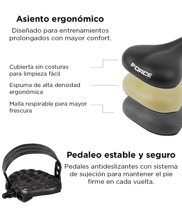 Estructura estable y segura para entrenar con confianza: Diseño robusto en acero que brinda firmeza durante el pedaleo, incluso en rutinas intensas, evitando movimientos indeseados. Freno mecánico con bloqueo de emergencia: Permite detener el giro de forma inmediata y controlada, aportando mayor seg...