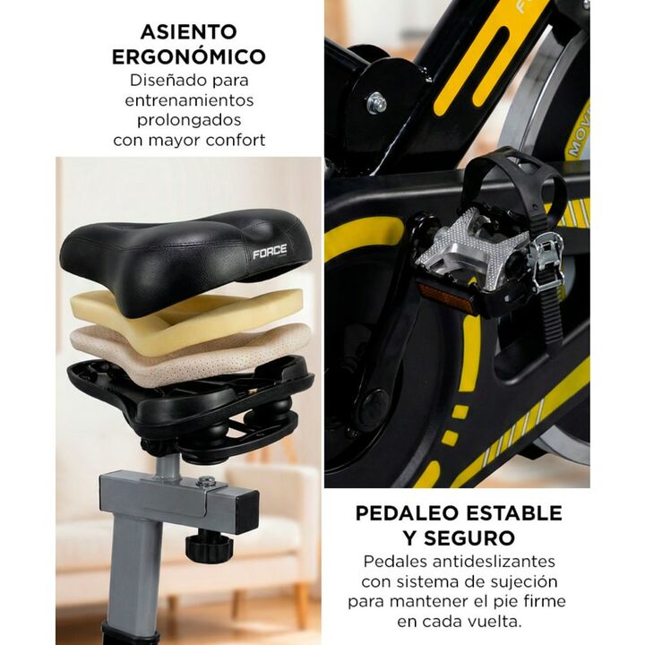 Pedaleo suave con volante de inercia de 6 kg: La bicicleta fija Force by Gadnic THG799 incorpora un volante de inercia de 6 kg que brinda una sensación de pedaleo más fluida y constante. Permite entrenamientos continuos, evitando movimientos trabados y mejorando la experiencia durante sesiones prolo...