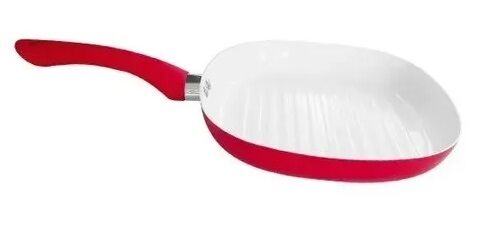 Bifera Acanalada 26 cm de diametro Carol ceramica antiadherente Ceramica Antiadherente Mango de Silicona Permite la coccion con poco aceite Toma temperatura rapidamente Conserva el calor durante mas tiempo Dura mucho mas Se limpia mas facil Apto para lavavajillas. Color Rojo