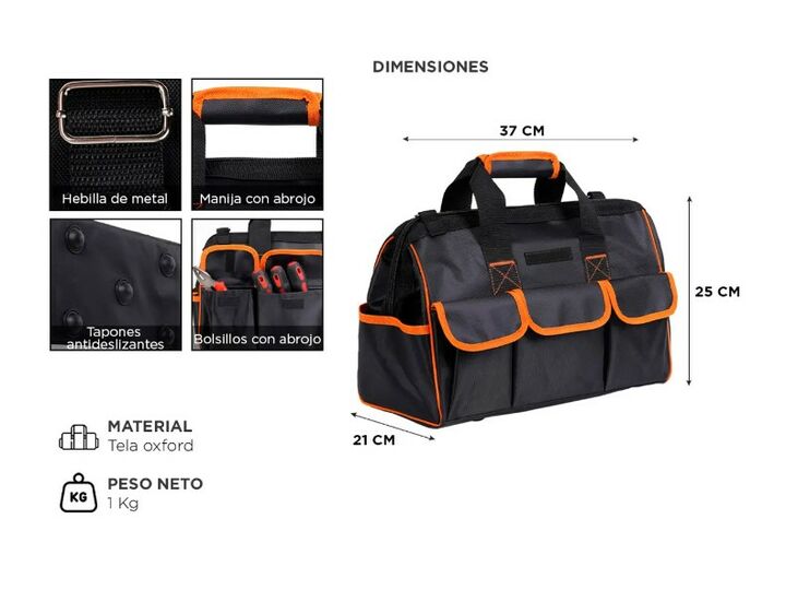 Descubre la solución ideal para mantener tus herramientas organizadas y protegidas con nuestro Bolso Organizador De Herramientas. Fabricado con tela oxford de alta calidad, este bolso garantiza resistencia y durabilidad en cualquier entorno de trabajo. Con sus 8 bolsillos exteriores y 6 bolsillos in...