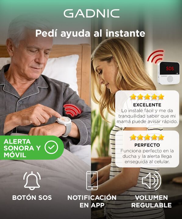 Alerta inmediata con un solo botón: El Botón de Pánico Gadnic Safe+ permite activar una señal sonora y enviar notificación al celular en segundos, ideal para asistencia rápida en el hogar. Conectividad WiFi con aplicación móvil: Compatible con redes 2.4GHz y vinculación mediante app inteligente, per...