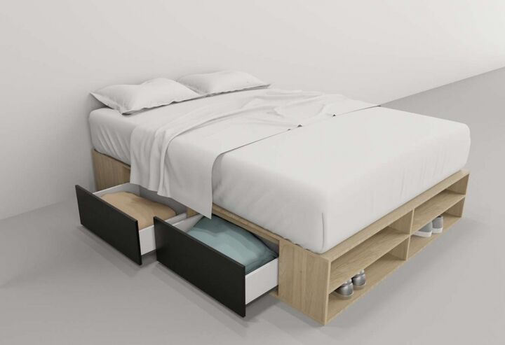 Medidas: Largo 1,95 m - Alto 0,33 m - Ancho: 1,42 m 4 Cajones con interiores revestidos 2 Estantes en piecera Corredera Metalica Repisa en Piecera Peso: 85 Kg. Sistema Minifix Melamina de alta resistencia Diseño exclusivo de la empresa IMPORTANTE Los muebles salen embalados en caja con instructivo d...