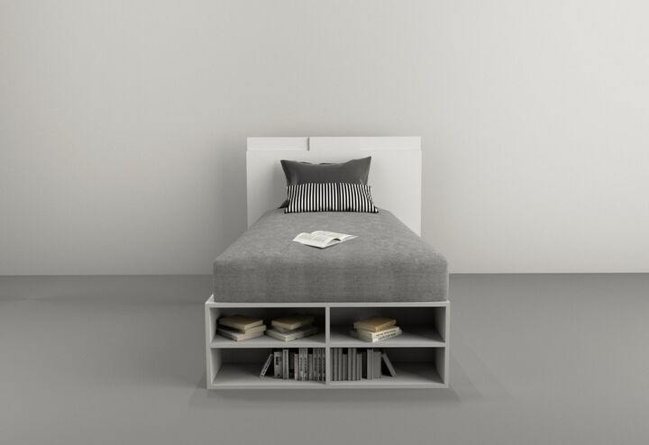 Box para colchón de hasta 0,90m. Linea MINIMAL Juvenil contiene 2 cajones de cada lateral para aprovechar el espacio de guardado y repisas en piecera. Respaldar ART 6429 se vende por separado Medidas: Largo 1,95 m - Alto 0,33 m - Profundidad: 0,92 m 4 Cajones con interiores revestidos Corredera Meta...