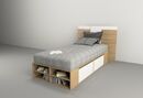 Box para colchón de hasta 0,90m. Linea MINIMAL Juvenil contiene 2 cajones de cada lateral para aprovechar el espacio de guardado y repisas en piecera. Respaldar ART 6429 se vende por separado Medidas: Largo 1,95 m - Alto 0,33 m - Profundidad: 0,92 m 4 Cajones con interiores revestidos Corredera Meta...