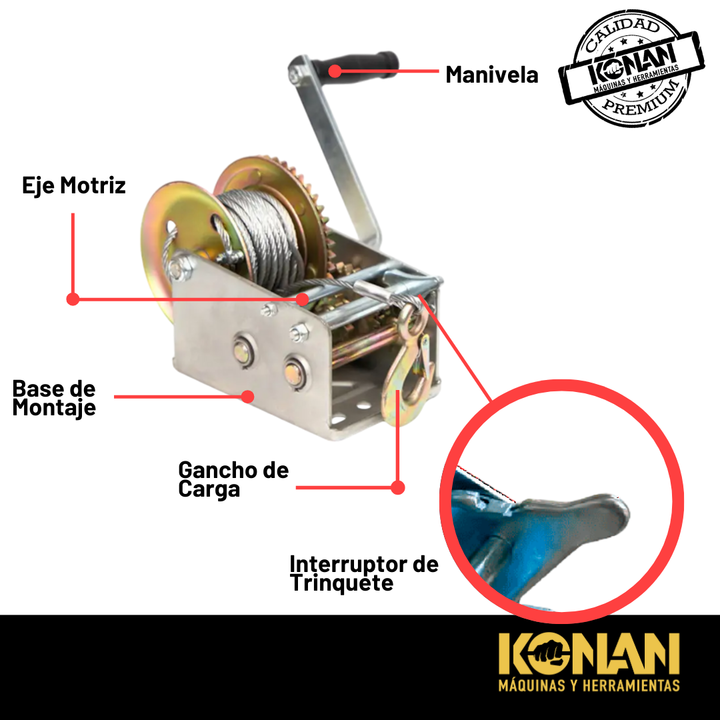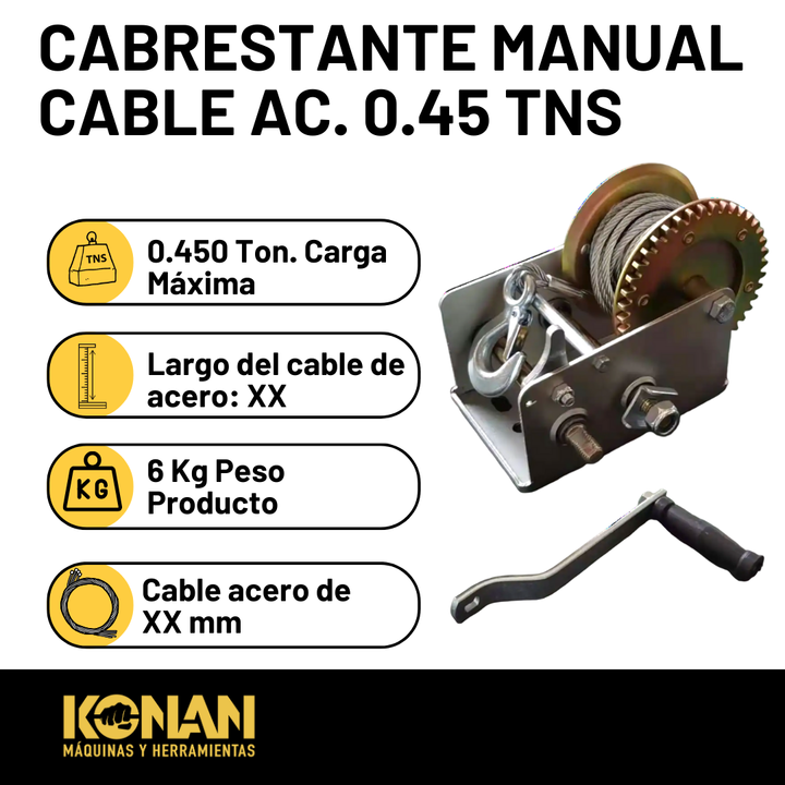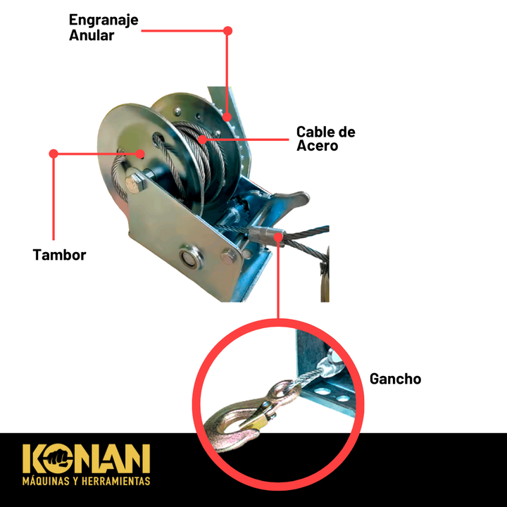 Cabrestante Manual Konan con Cable de Acero – 0,45 Tns