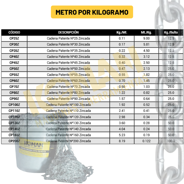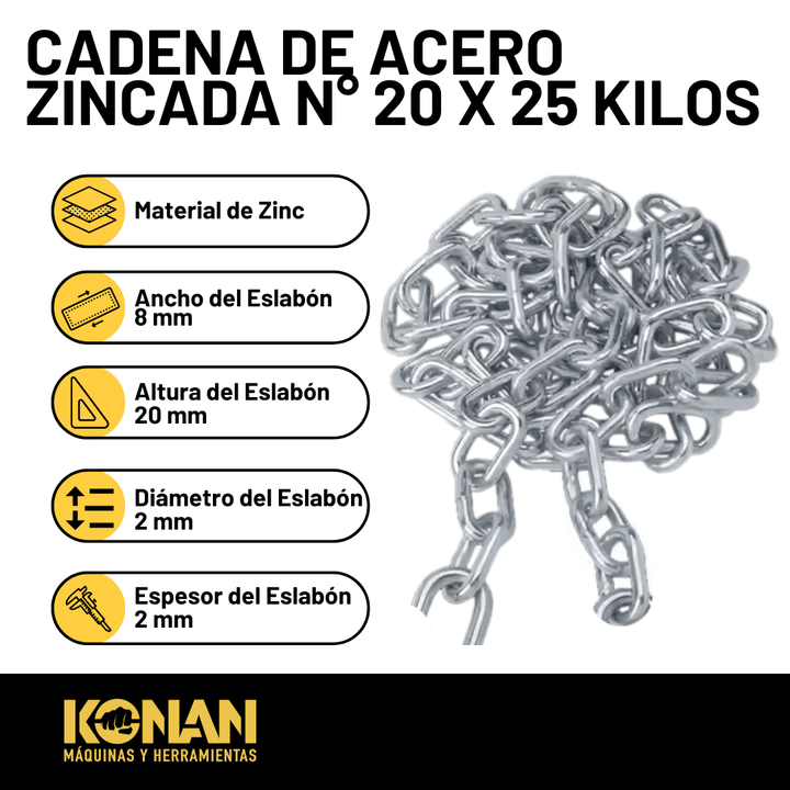 Cadena Konan Zincada N° 20 – 25 kg