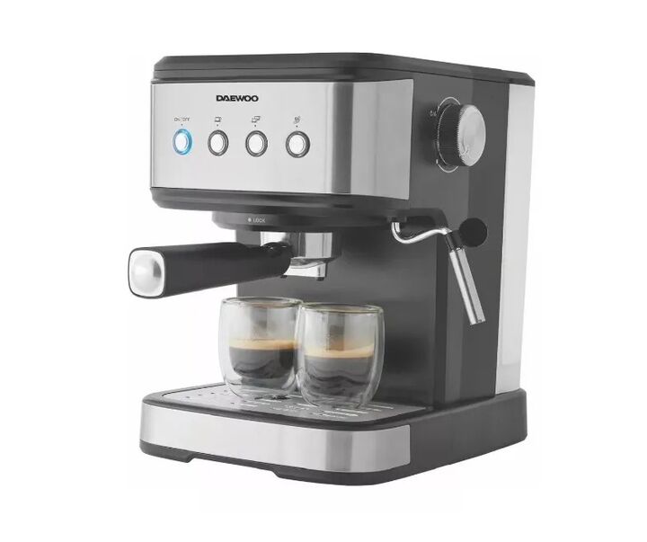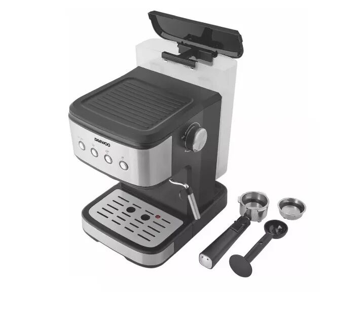 Esta cafetera cuenta con 20 bar de presion y un tanque de agua de 1.5 Lts.Disfruta tu cafe con la cafetera express Daewoo CM1000. Podras usar tanto cafe molido como capsulas monodosis y preparar en simultaneo hasta 2 tazas. Tambien posee espumador para la leche.