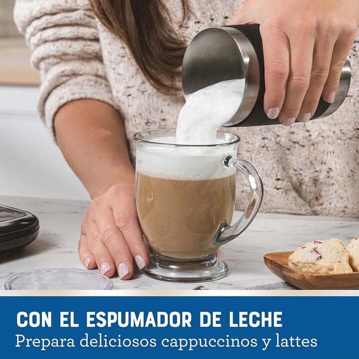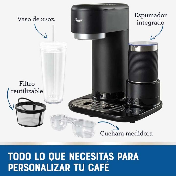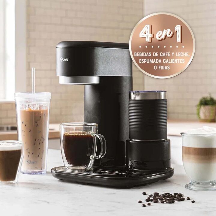 PREPARÁ DESDE TU CASA BEBIDAS DE ESPECIALIDAD FRÍAS O CALIENTES COMO LAS DE TU CAFETERÍA FAVORITA Con el espumador de acero inoxidable de la cafetera Latte Oster®, dale el toque exacto de espuma a tu latte, cappuccino u otras bebidas favoritas. Olvídate de ir hasta la tienda de café especializado fa...