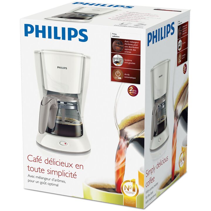 Café simplemente delicioso Con Aroma Twister para la mejor experiencia de sabor Disfrute del sabor y aroma del café recién hecho con esta confiable cafetera Philips. Gracias a la tecnología Aroma Twister, cada taza ofrece un sabor óptimo. Diseñada para usted • Capacidad de 1,2 litros para preparar d...