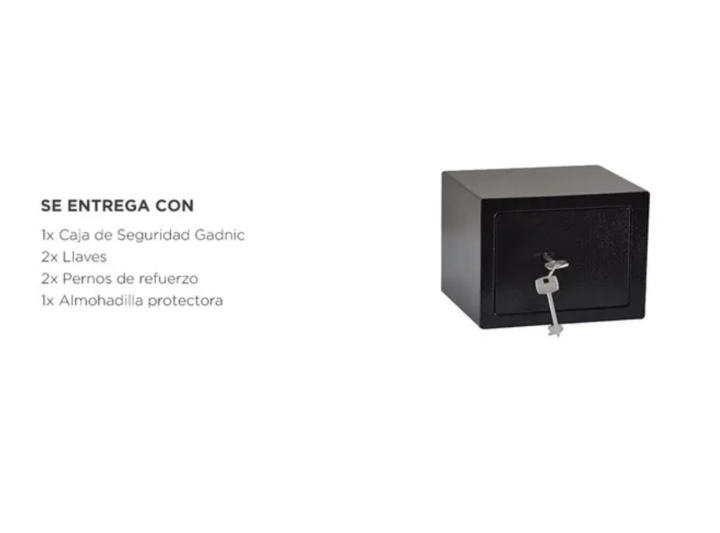 Gadnic presenta la nueva Caja Fuerte de Seguridad Reforzada Protege lo que más valoras con esta caja fuerte de alta seguridad. Diseñada con materiales de máxima resistencia y un sistema de cierre confiable, esta caja fuerte es ideal para mantener tus pertenencias a salvo. Su tamaño compacto y la pos...