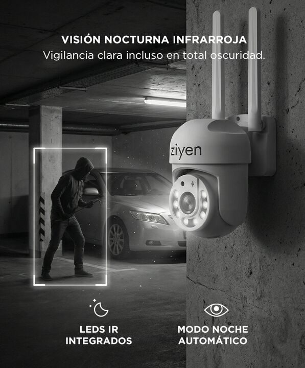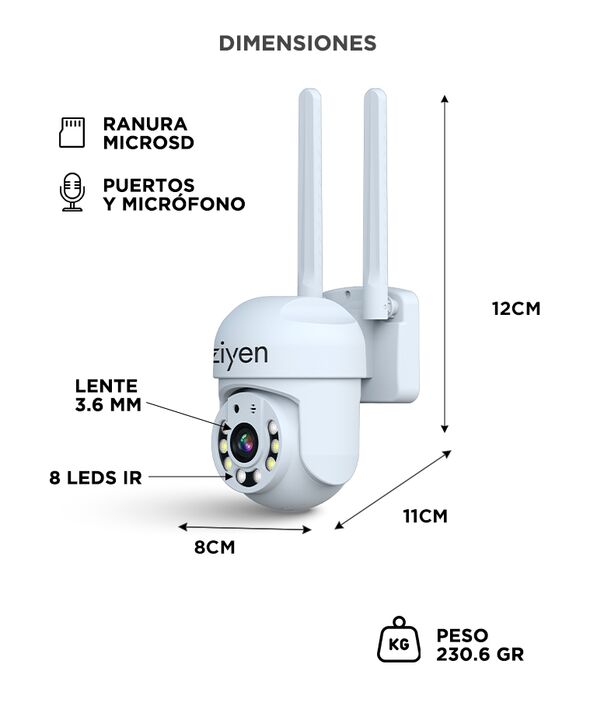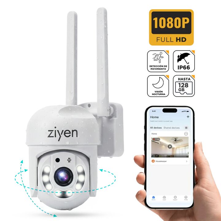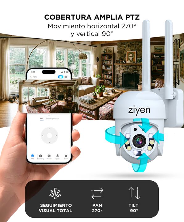 onitoreo remoto en tiempo real desde el celular: La cámara de seguridad WiFi exterior Ziyen permite ver en vivo lo que sucede desde el smartphone. Accedé al monitoreo en cualquier momento y lugar mediante la aplicación. Cobertura amplia con movimiento PTZ: Incorpora movimiento horizontal de 270° y v...