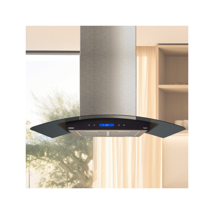 COMANDO TOUCH3 VELOCIDADESFUNCION MODO AUTOMATICOSENSOR DE HUMO Y TEMPERATURACONTROL REMOTOANCHO 90cmILUMINACION SPOT LEDS 4 X 2 WMOTOR 200 WCAUDAL 800 MHACERO INOXIDABLE