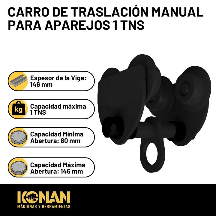 Carro de Traslación Manual Konan para Aparejo – 1 Tn