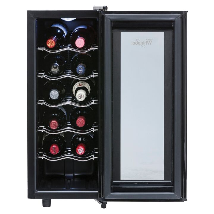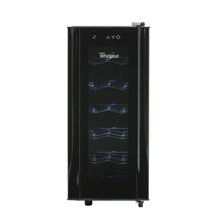 CAVA 12 BOTELLAS WHIRLPOOL Marca: Whirlpool Modelo: WZC12AB Tipo: Cava de vinos termoeléctrica Capacidad: 12 botellas Color: Negro Puerta: Vidrio doble templado con marco negro Tipo de enfriamiento: Termoeléctrico (sin compresor, bajo nivel de ruido) Control de temperatura: Digital con display LED R...