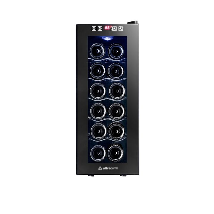Cava termoelectrica para proteger la calidad y el sabor de sus vinos. Capacidad de hasta 12 botellas.Potencia 70 WSist. de refrigeracion TermoelectricoCapacidad neta 35L 12 botellasRango de temperatura 11C - 18CLuz LED azul internaPuerta con doble vidrio templado5 rejillas de cromo separadorasContro...