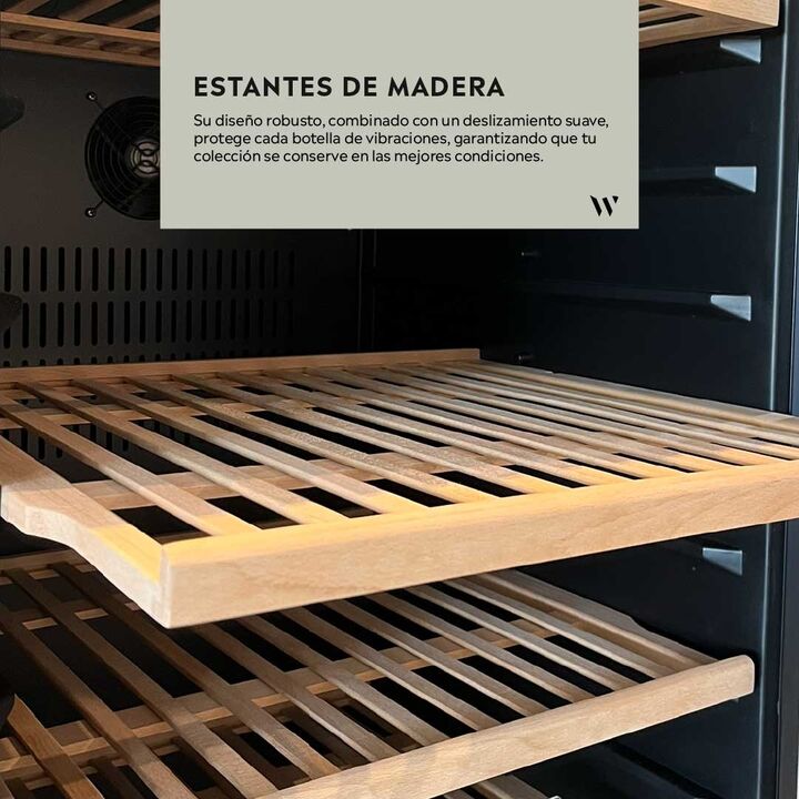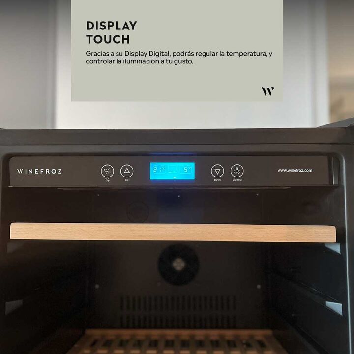 Descripción Las cavas premium de vinos Winefroz mantienen un equilibrio ideal entre temperatura, iluminación y humedad. El modelo MN100S, de simple temperatura,permite regularla entre 5ºC a 18ºC según el tipo de vino que desea conservar , tiene una capacidad para 111 botellas y cuenta con motor comp...
