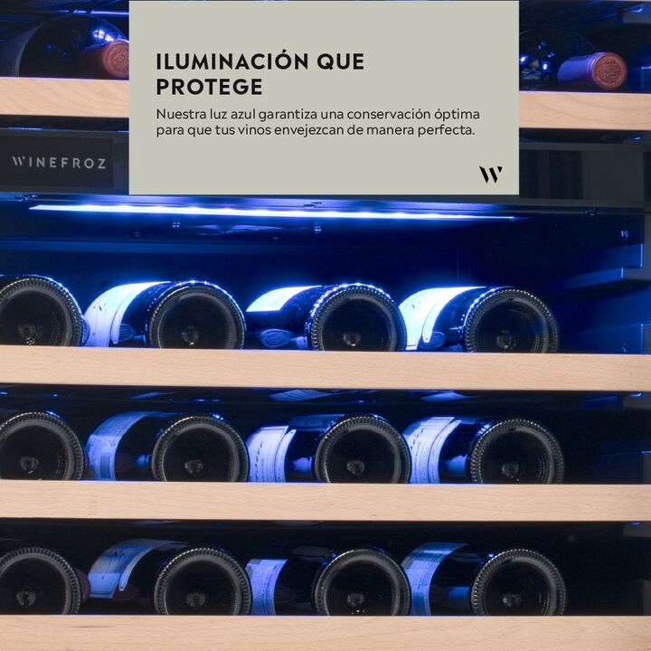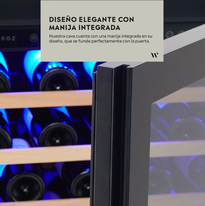 Descripción La nueva líneaGLASS DOOR EDITIONdeWINEFROZmantienen un equilibrio ideal entre temperatura, iluminación y humedad. Este nuevo diseñose destaca por la puerta de cuádruple vidrio y manija integrada. El modelo GD300D, dedoble temperatura,permite regular cada compartimento de acuerdo al tipo ...