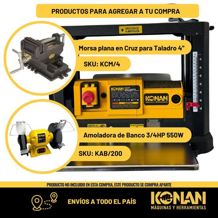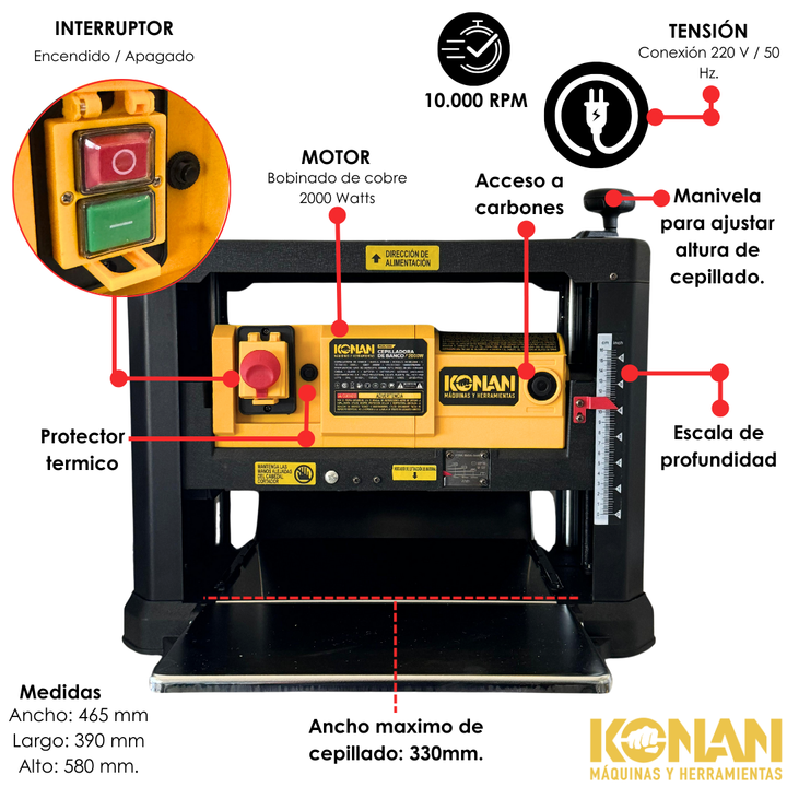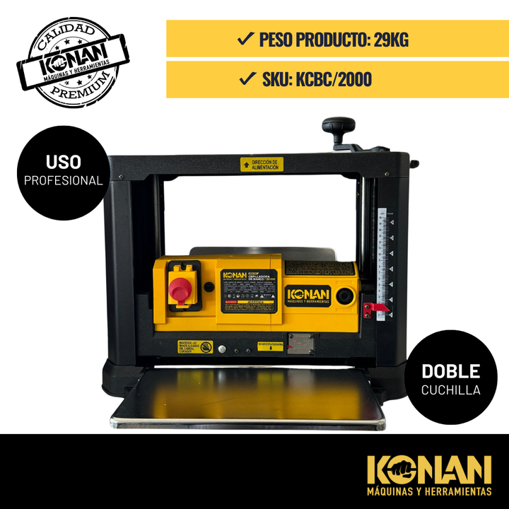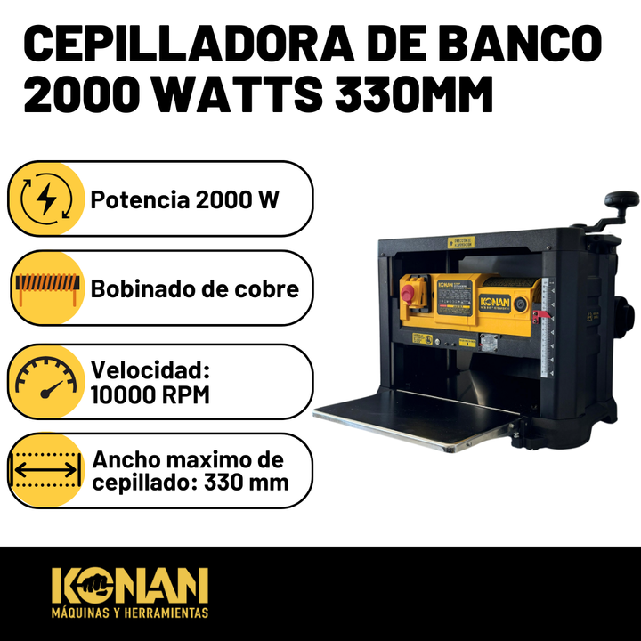 Cepilladora de Banco Konan – 2000 W · 330 mm de Ancho de Cepillado
