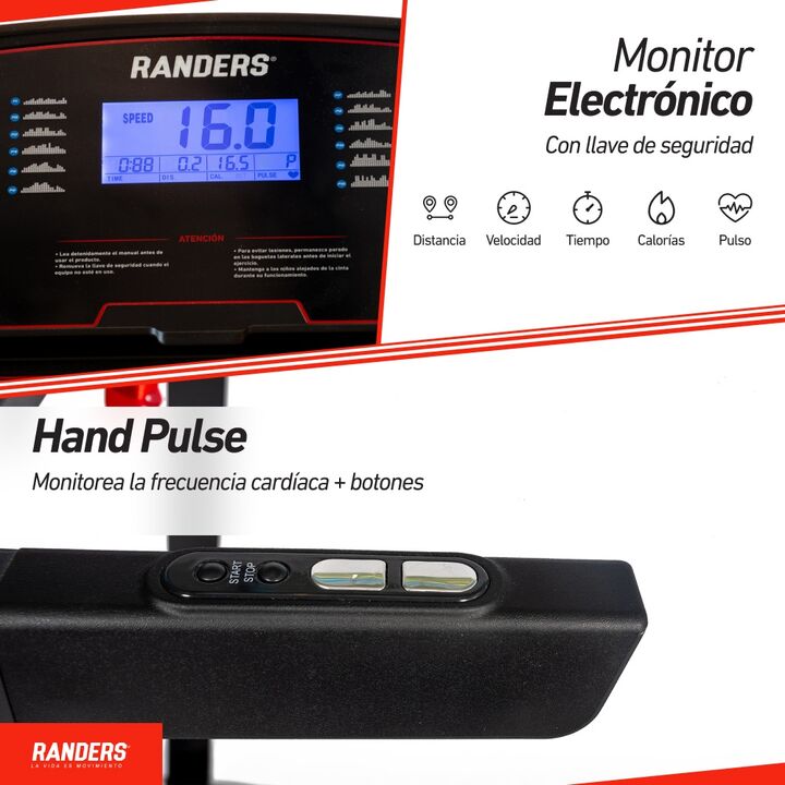 Peso máximo: 110 kg Motor: 0,85HP|1,75HPP Velocidad máxima: 16Km|h Superficie útil: 120x42cm Programas: 12 Monitor: Tiempo, Velocidad, Distancia, Calorías, Pulso Inclinación: Manual (3 posiciones), plegable Medidas del producto: 148x67x120 cm Peso del producto: 38 Kg