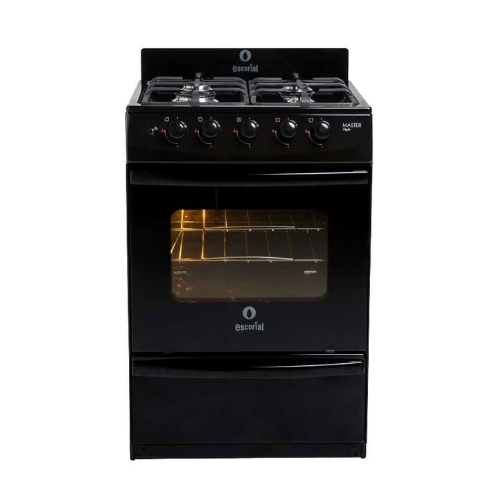 Negra con laterales del mismo color y tapa de horno de vidrio negro.