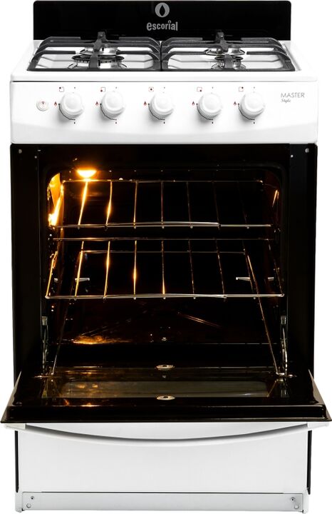 Cocina Bigas Master Style Blanca 56Cm Escorial -Cocina Multigas -Encendido Electrónico De Una Mano -Reja De Fundicion -Respaldo De Vidrio Nuevo Y Renovado Diseño -Luz En Horno -Doble Parrilla Extraíble -Válvula De Seguridad En Hornallas Y Hornos -Puerta De Horno Con Doble Vidrio -Quemadores De Alumi...