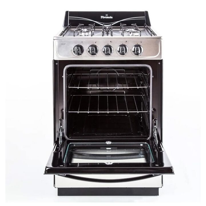 Cocina de acero inoxidable Kit Multigas (Para conexión a red y envasado) Eficiencia energética AA Enlozado de horno y parrilla Fácil Limpieza Cuatro hornallas Plancha de acero inoxidable Rejillas anti vuelco enlozadas Respaldo de vidrio Puerta visor de doble vidrio templado con freno y desmontable C...