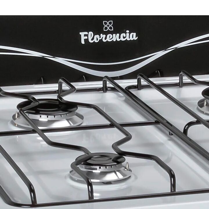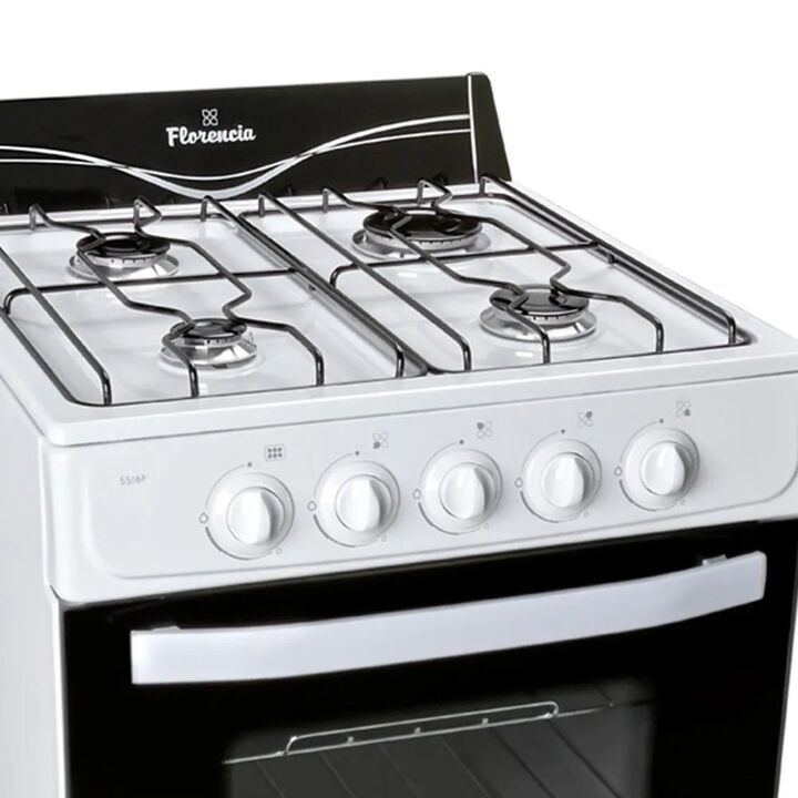 CARACTERISTICAS CocinaFLORENCIA Linea Recta Classic 56 cm Nuevo sistema de valvula de seguridad en horno y honallas Cajón parrilla con tapa rebatible Enlozada color blanco Parrila y horno con facil limpieza. Cuatro hornallas. Puerta de horno con doble cristal templado con freno y desmontable. Válvul...