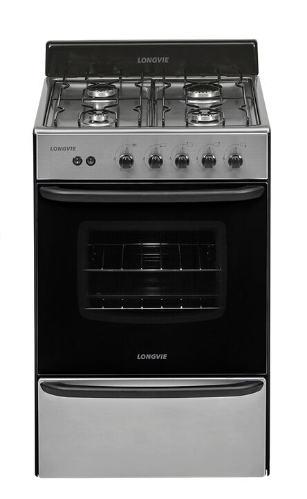 Acero inoxidable con rejas de varillas de hierro enlozado, luz y encendido electrónico.