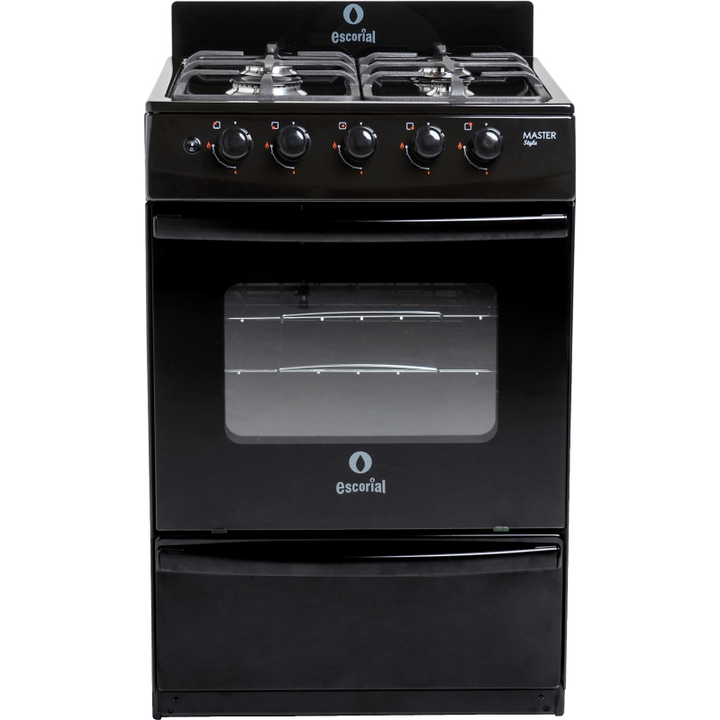 -Cocina-Bigas-Master-Style-Negra-56Cm-Escorial---Cocina-Multigas---Encendido-Electronico-De-Una-Mano---Reja-De-Fundicion---Respaldo-De-Vidrio-Nuevo-Y-Renovado-Diseno---Luz-En-Horno---Doble-Parrilla-Extraible-Valvula-De-Seguridad-En-Hornallas-Y-Hornos---Puerta-De-Horno-Con-Doble-Vidrio---Quemadores-D...